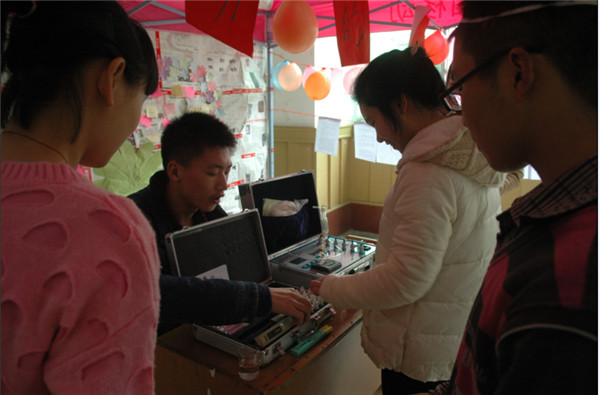 14:30,环博会准时开始。本次环博会主要由1个游览中心、5个环境主题会馆、2个协会特色部门以及1个绿色体验馆组成。轻轻文明、穹顶之下、荒化危机7Plus、小米的成长、生命之源等5个主题馆分别展示了噪音污染、大气污染、沙漠化、资源浪费、水污染等等五方面问题的危害、产生原因及应对措施。由公司志愿者协会义务检测部和公益服务部两个特色部门组建的跳动的心和爱心之家两个展馆则展示了近年来公司志愿者在为社区居民家庭进行空气、水质、重金属等等方面检测和在市社会福利院、市聋哑儿童公司关爱孤儿、聋哑儿童的成果。绿色体验馆展示了变废为宝手工艺制品的同时,让游客有机会亲手体验变废为宝的全过程。
