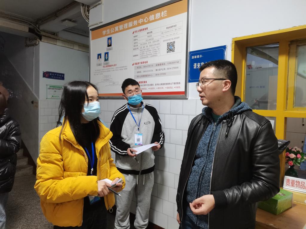 新学期伊始,为了解掌握公司员工返校的思想动态和加强寝室安全卫生教育,创造良好的校园生活环境。3月7日下午6:20公司党总支副书记潘维、学工办副主任崔宝玉、思想政治辅导员罗云和辅导员张魏霞一行人前往南坝校区一舍,三舍看望同学们的住宿条件和生活状况,并与同学愉快交流。
