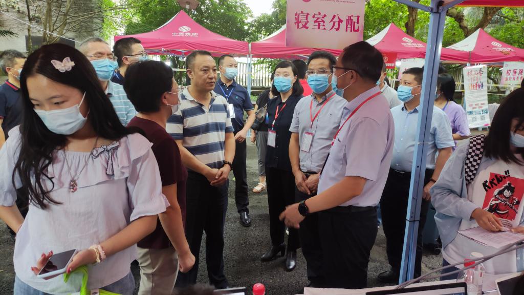 报道当天发放校园卡,新生手册,宿舍钥匙等物品及辅助新生完成个人信息核对等相关事宜。迎新工作进行得如火如荼,迎新现场也严格的按照流程进行。随着新同学陆续的到来。志愿者们首先帮助他们把行李寄存好,随后有条不紊的引领新生完成报到的所有程序,在志愿者的陪同下报道程序简单快速。院领导和老师对同学们关于政策、学习、生活等方面的疑问进行了详细解答,并予以鼓励,真正做到了:沟通零距离。对于省外报到新生,在进入校园第一时间就由志愿者带领前往校医院做二次核酸检测,坚决抓好防疫工作贯彻落实。当天下午刁永锋董事长等校领导一行人莅临bw西汉姆联视察指导迎新工作,并予以高度肯定。