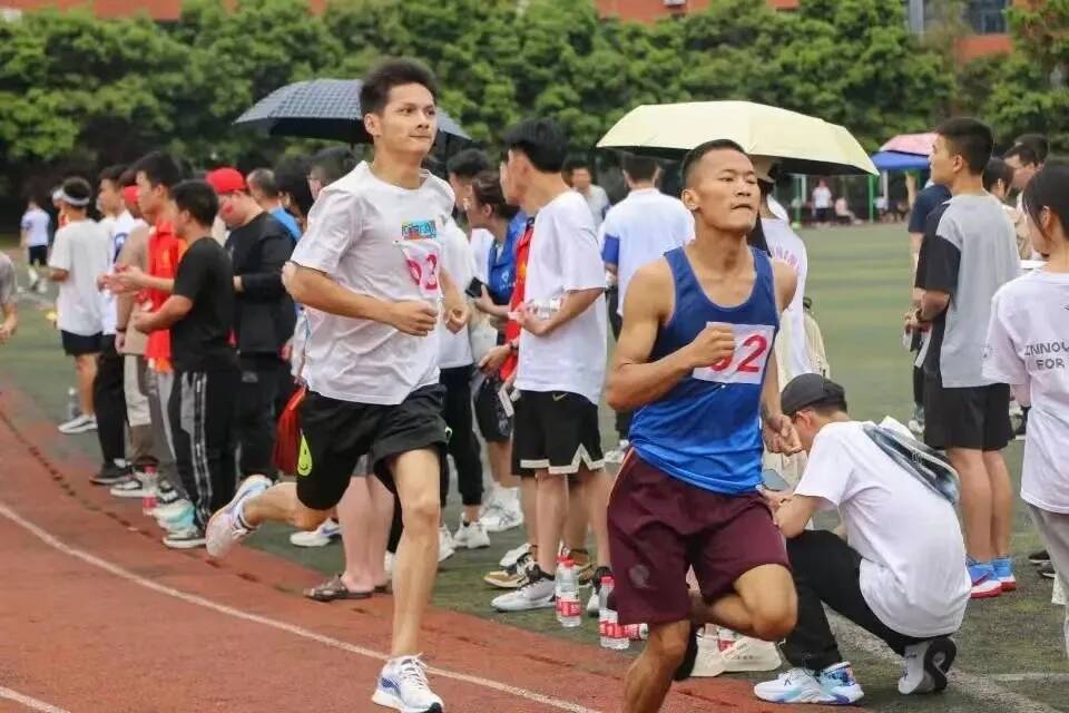 在为期两天的运动会上,化工师生奋勇争先,顽强拼搏,凭着顽强的意志和坚定的信念,在运动会上屡创佳绩,为公司赢得了荣誉。公司学子朱世明在800、1500两个项目中拔得头筹荣获冠军,并与其他同学合作在4×400项目上荣获第四名的优异成绩。在运动员们挥洒汗水的同时,后勤保障工作也在有条不紊的进行着,后勤人员坚守岗位,及时通知运动员参赛,协助运动员检录,奔波在田径场上,为同学们加油助威,确保了运动赛事的顺利进行。