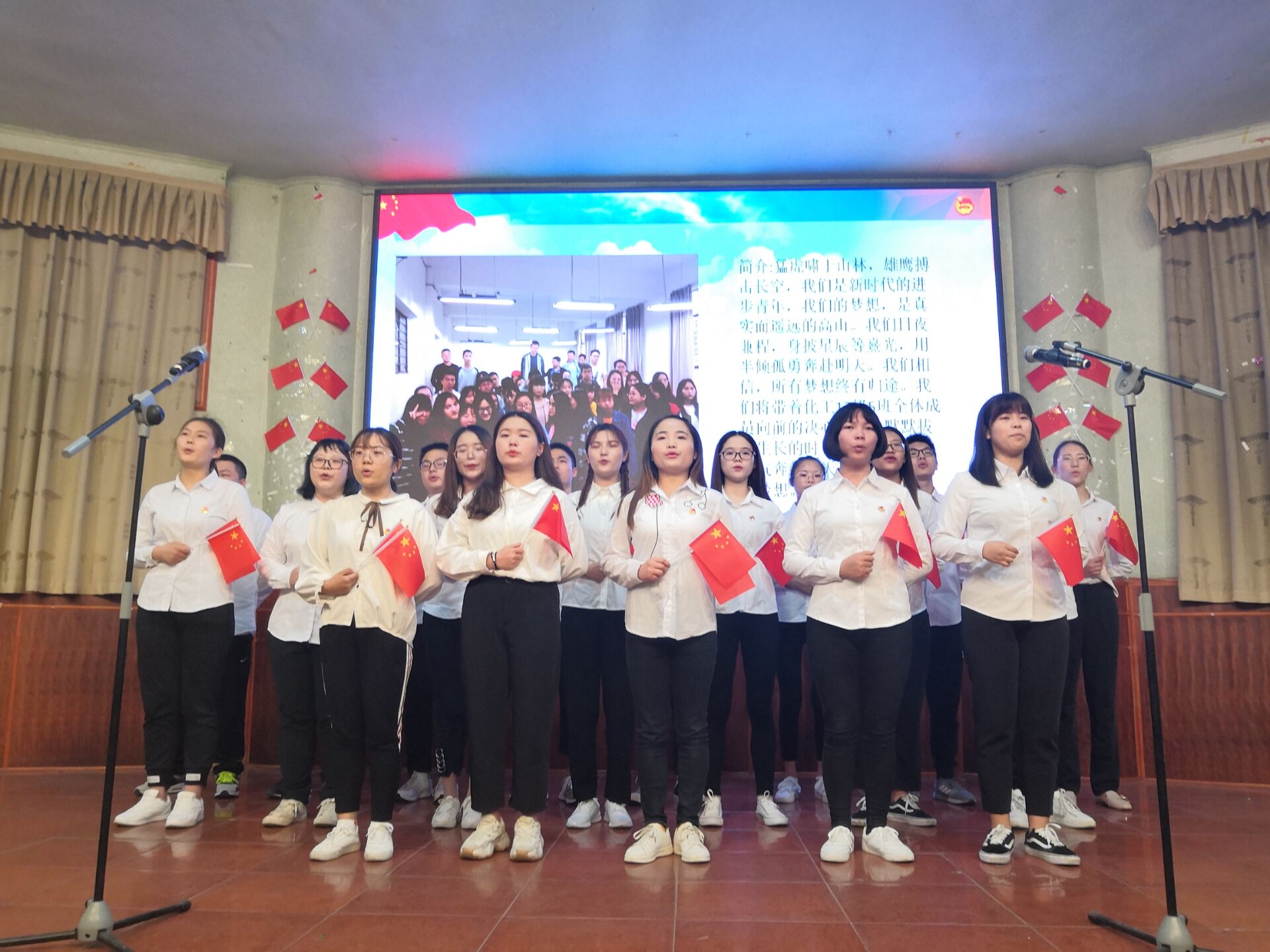 为传承和发扬五四精神,激发同学们的爱国主义热情,5月12日19:00,bw西汉姆联在南坝校区学术报告厅开展以“赓续五四精神,奋进复兴征程”为主题的团日活动。本次活动以合唱红歌比赛的形式展开, 2017级、2018级各支部代表参加红歌会,团学干部出席并担任评委。