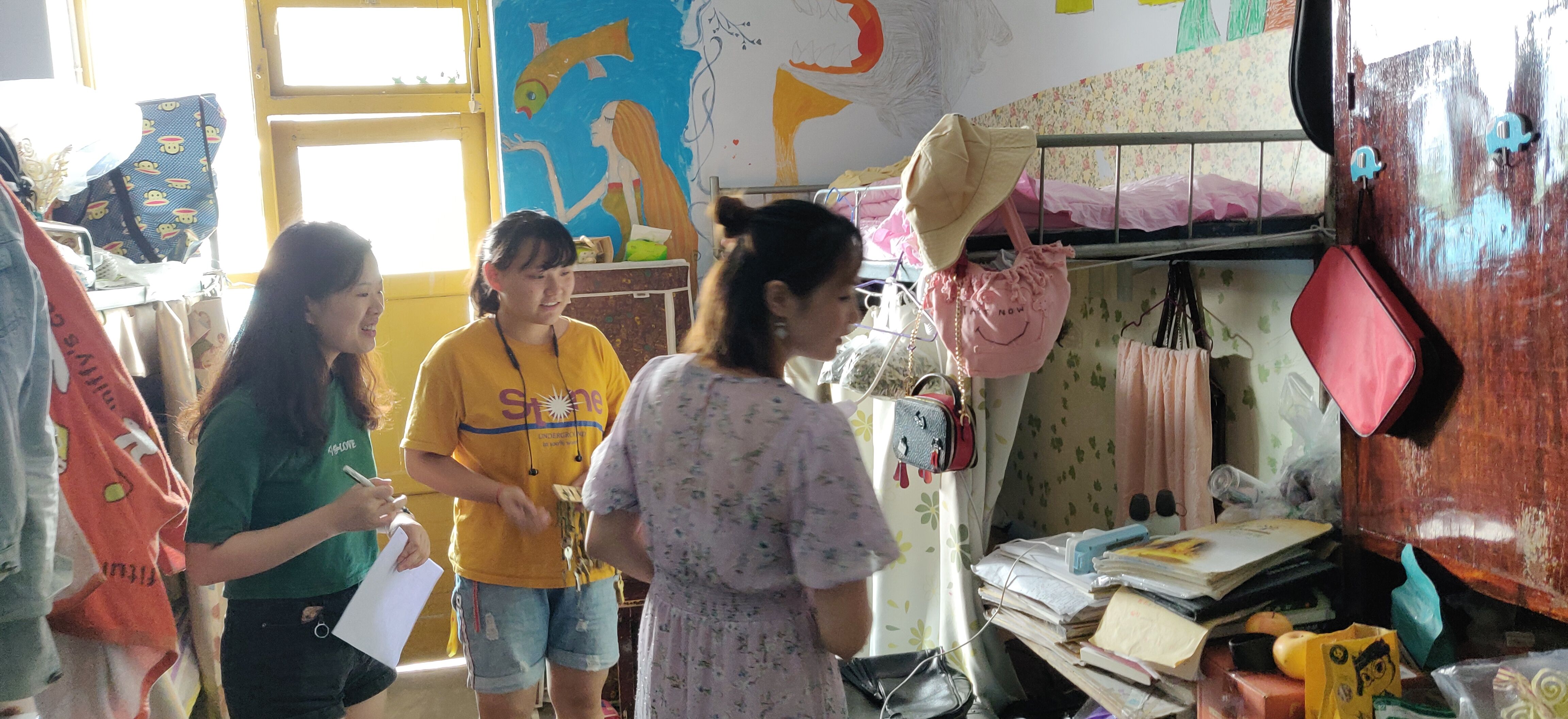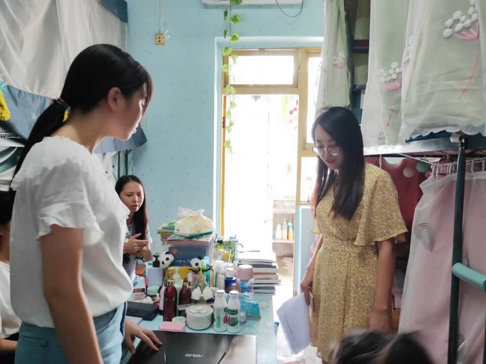 付琼瑶老师和张魏霞老师在进入女生寝室后,对干净整洁的女生寝室提出表扬,并强调了安全、卫生等问题的重要性。并给同学们提出建议,如离开寝室时切断电源,寝室要经常通风换气,垃圾要及时清理,并特别强调禁止在寝室使用大功率电器等,最后老师们还提出,希望同学们在新的一学期里展现出当代老员工的新风貌,同时也希望同学们积极发言,主动表现自我。如在生活或是学习方面有任何问题,都可以随时联系老师。