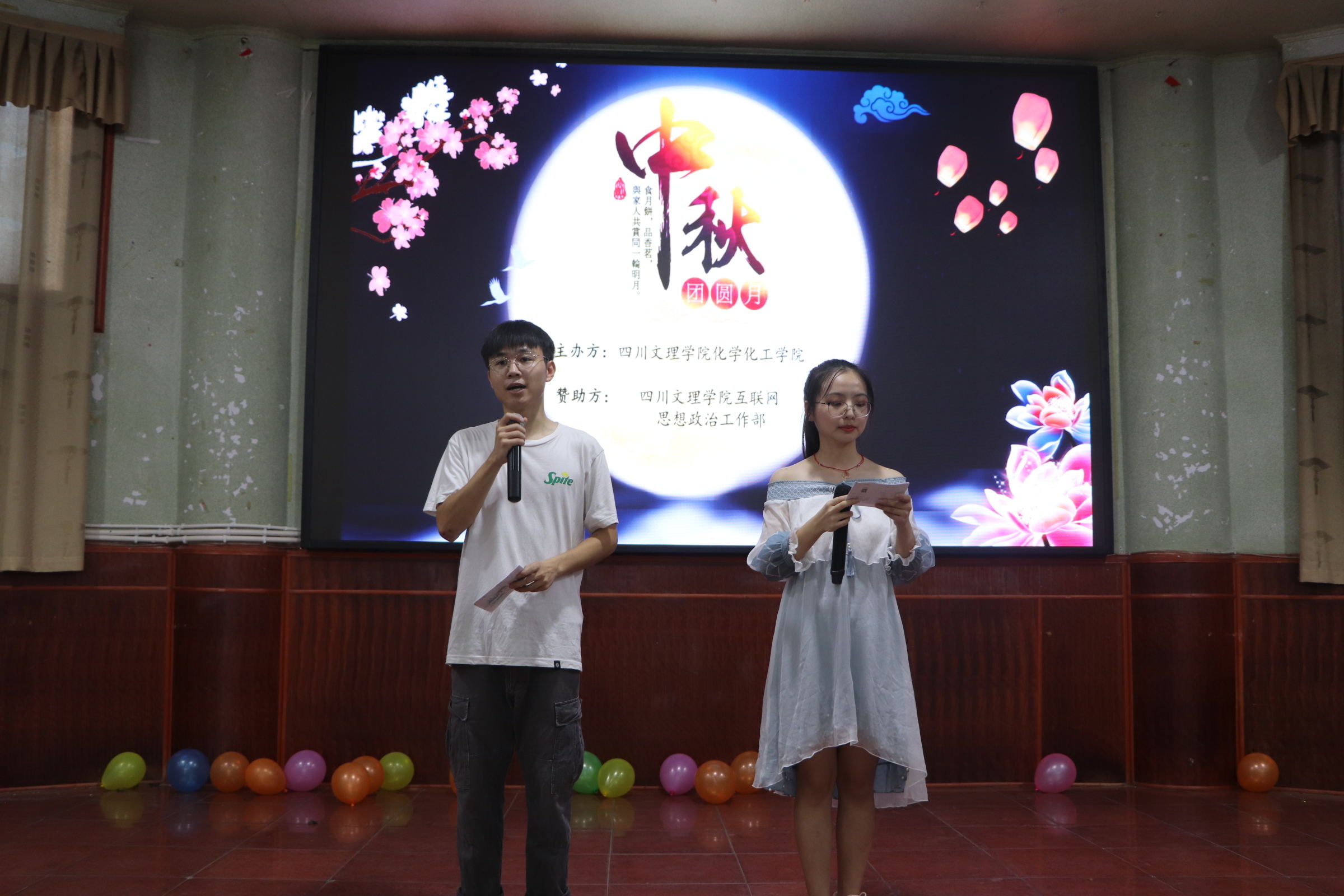 在一段精彩的开场舞之后,主持人宣布本次中秋联谊会正式开始,首先进行的是破冰游戏“步步惊心”,现场气氛在同学们的积极参与下成功引爆,看着场上坚持不放弃的同学,全场掌声雷动,激动的呐喊声、加油声夹杂在一起,充分展现出了他们无限的青春活力。而后,才艺展示、猜谜语、击鼓传花……层出不穷的游戏让大家尽情享受着这个美好的中秋之夜。其中最具特色的是才艺展示环节,2019级的新同学们积极展现自我,毫不怯场的站上了舞台,展现新生青春洋溢的一面,师兄师姐们和新生们你来我往,将全场的气氛推至顶峰,大家都沉浸在节日的欢声笑语中。