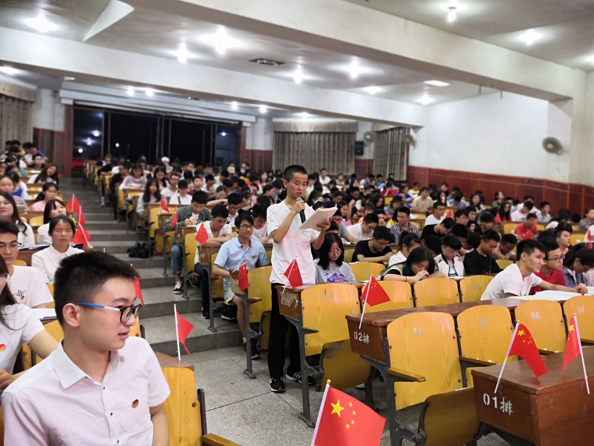 寒秋来临,气温骤降,为迎接中华人民共和国成立70周年和回顾在新中国成立以后中国发生的变化,bw西汉姆联于2018年9月16日晚上7:00在学术报告厅举办了“我与祖国共奋进——国旗下的演讲”特别主题团日活动, 2018级200余名团员青年参加活动。