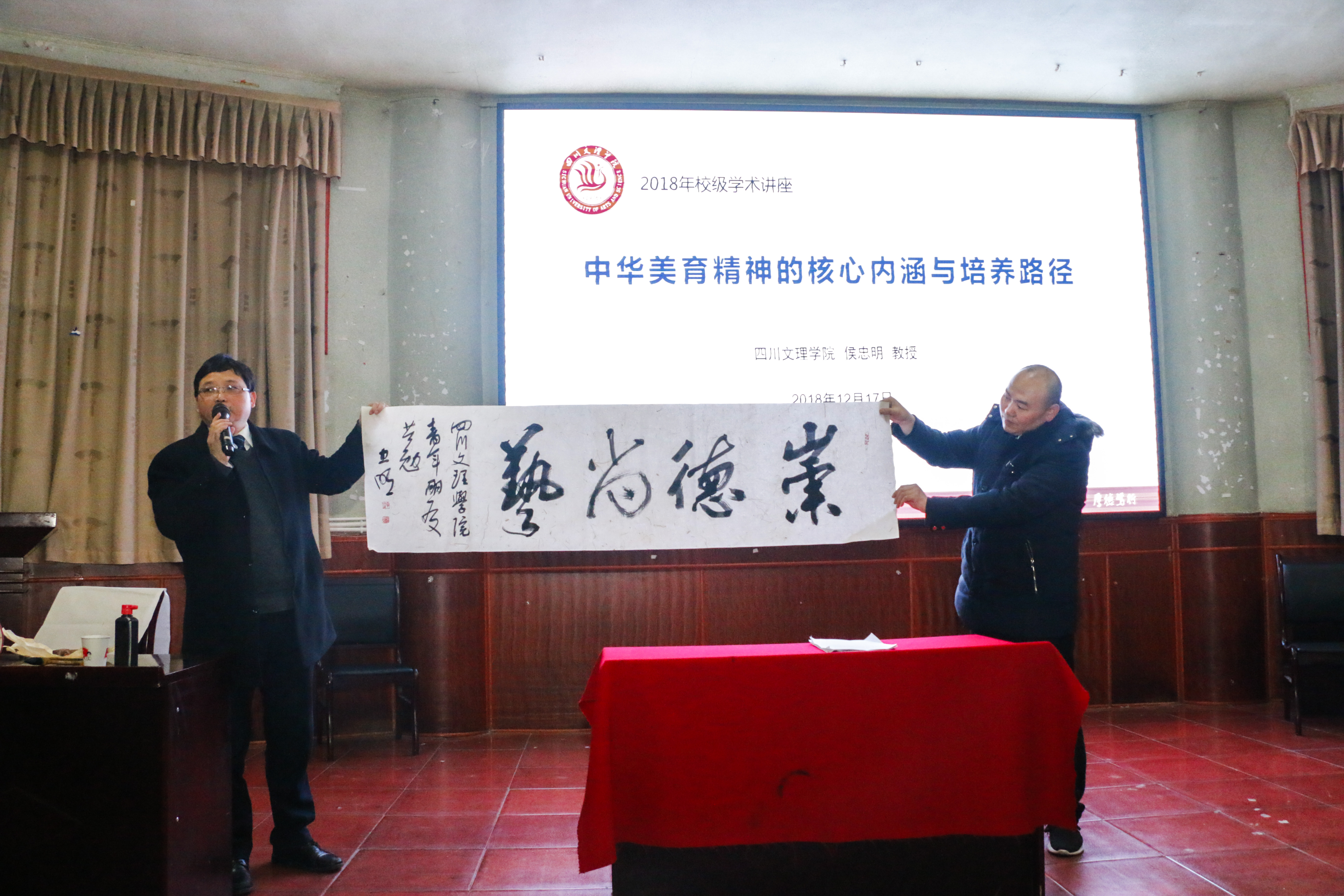 12月17日晚上,四川文理公司党委副书记侯忠明教授在南坝校区学术报告厅作题为《中华美育精神的核心内涵与培养路径》的学术讲座,讲座由公司党总支书记朱朝菊主持。智能制造公司、bw西汉姆联300余名师生聆听讲座。