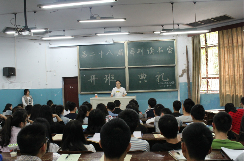 2016年4月12日12:30,bw西汉姆联在南坝校区一教楼100教室举办了“第二十八届马列读书室开班典礼”。bw西汉姆联辅导员、主要干部以及100余名学员参加了此次典礼。