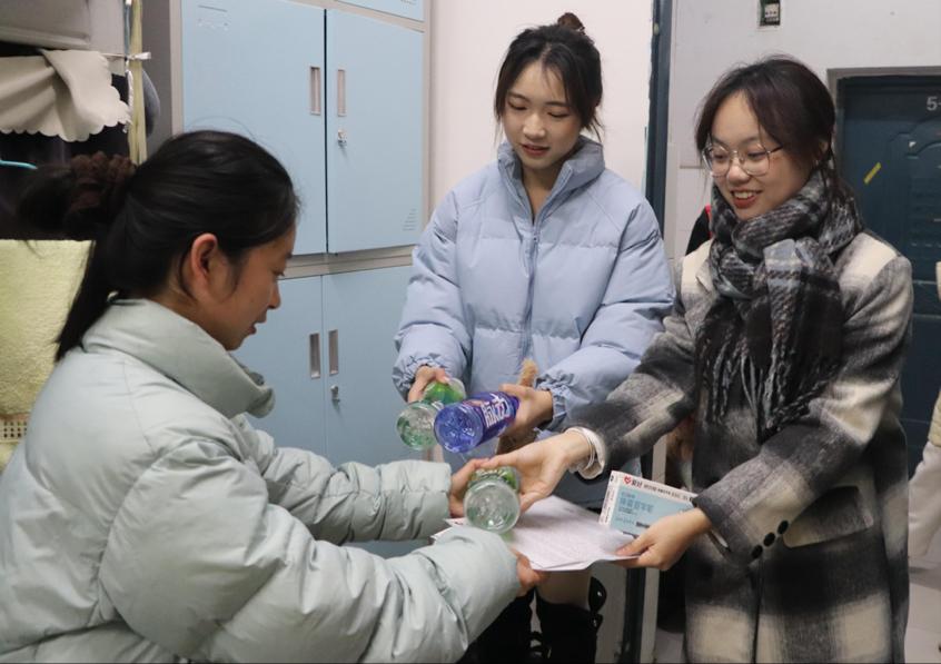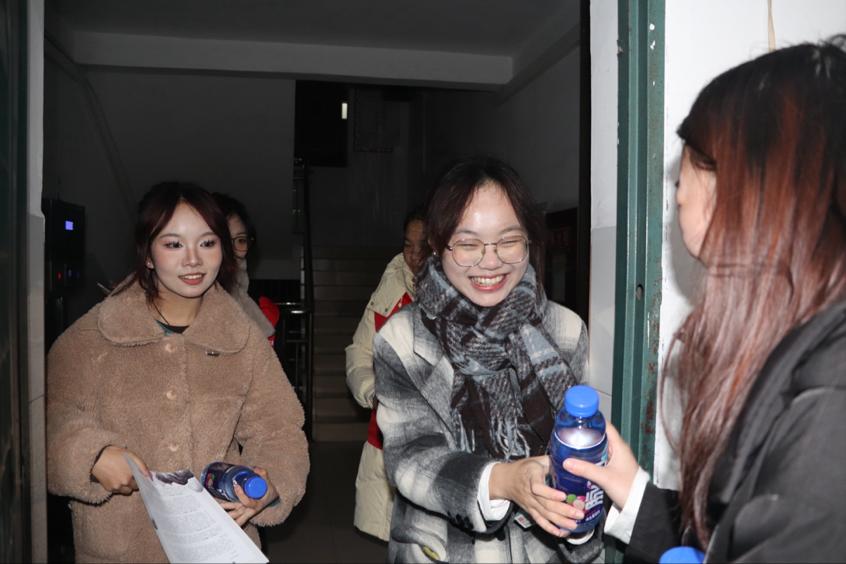 公司团学代表与志愿者团队带着慰问信、饮料和签字笔等慰问物资,满怀热忱地前往莲湖校区员工宿舍。他们逐一走访各寝室,将精心准备的慰问品送到毕业生手中。毕业生们接过礼品时,感激之情溢于言表,坚定表示会将母校的培育之恩铭记于心。随后,志愿者们亲手将一封封充满深情的慰问信交到学子手中,信中凝聚着他们大公司园生活的美好回忆,通过温馨的语句,深深表达了公司对他们在求职深造及创业道路上的不懈追求和辛勤付出的肯定,激励着他们以更加昂扬的斗志,勇敢地迎接未来的每一个挑战。
