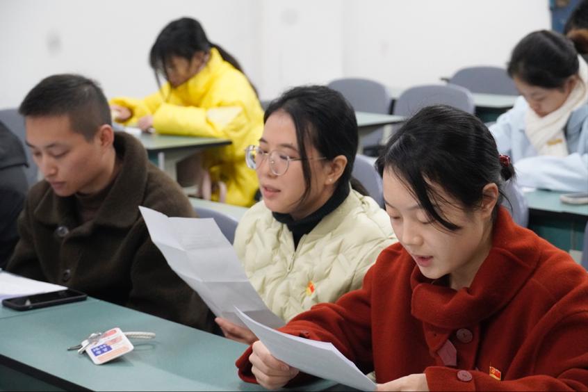 会议第三项议程,全体起立进行入党宣誓。最后,崔宝玉作总结发言,并带领支部成员深入学习了习近平总书记《论教育》的重要内容,要求全体支部成员深刻领会其核心要义,明确自身成长目标与方向,将个人发展与国家、社会需求紧密相连,增强使命感与责任感,在学习和生活中更好地发挥党员的先锋模范作用。