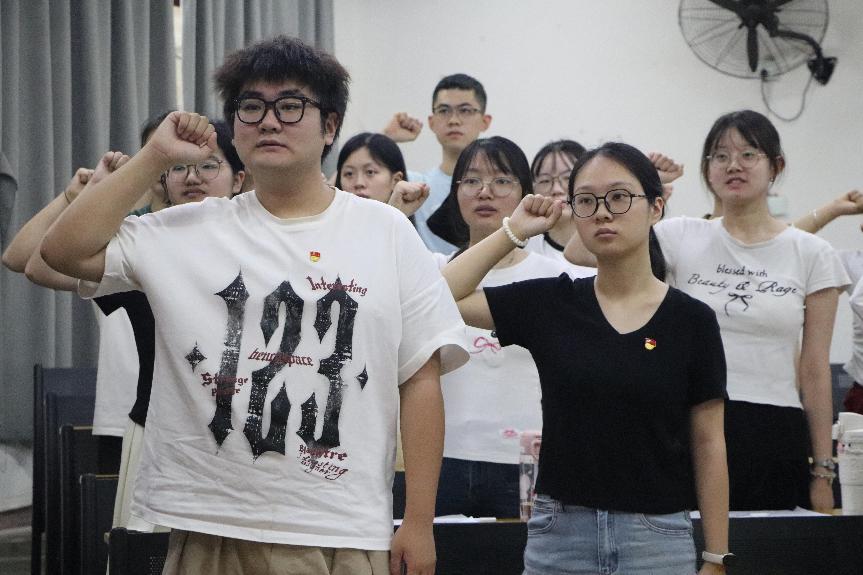 尔后,与会党员就客观公正的原则,共同讨论是否接受张玉等15名预备党员转为正式党员。经全体党员的无记名举手投票表决,一致同意张玉等15名预备党员按期转为正式党员。最后,潘维书记、崔宝玉主任带领全体党员庄严宣读入党誓词,并对转正的同志表达了由衷的祝贺。同时,潘书记、崔主任也对他们提出了五点要求:固牢政治工程,铸造过硬本领,厚植为民情怀,发扬斗争精神,永葆青年本色。他们希望转正的党员同志以身作则,将这次大会视为一个新的开始,继续努力,牢记党员身份,不断加强党性修养,在学习、工作和生活中充分发挥先锋模范作用。