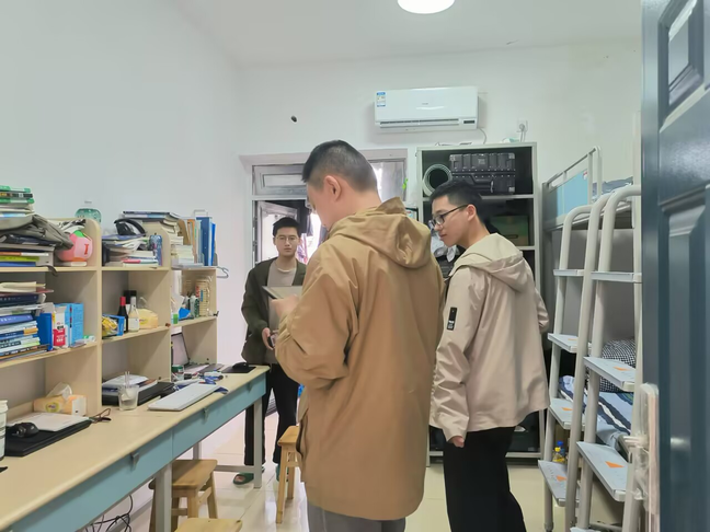 为筑牢员工公寓安全防线及规范公寓管理,切实保障员工公寓的住宿环境安全,2025年11月6日,公司开展员工公寓走访及安全大检查,学工办主任崔宝玉及全体专职辅导员深入员工公寓进行走访,并检查宿舍安全。