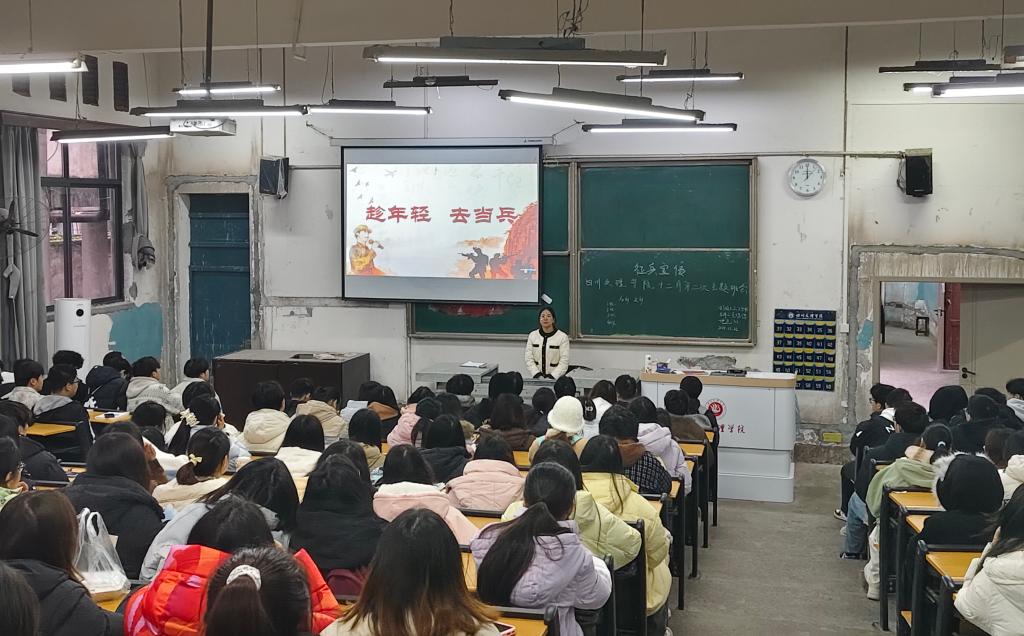 为深入贯彻落实征兵工作部署,激发广大青年参军报国的热情,增强同学们的国防意识和爱国情怀,2025年12月19日,bw西汉姆联组织各班级开展征兵宣传主题班会。