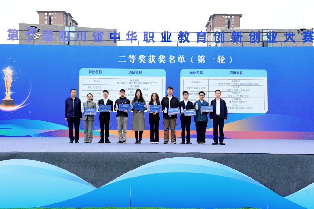 据悉,本届大赛以“职教育工匠,双创筑梦想”为主题,由省委统战部、自贡市委指导,自贡市政府支持,省中华职业教育社、教育厅、人力资源和社会保障厅、省总工会、省科协、省工商联联合主办。参赛项目紧贴国家政策、民生福祉、社会发展,涉及制造业、农业、卫生、能源、环保等多个领域,旨在培养更多创新创业型高技能人才,服务经济转型升级,促进职业院校创新创业教育深入开展,助力社会主义现代化四川建设。自2023年9月大赛启动以来共有441个项目参赛,经历初赛、复赛的层层选拔后来自全省59所院校的102个项目团队入围决赛,最终评选出一等奖12个、二等奖18个、三等奖72个。