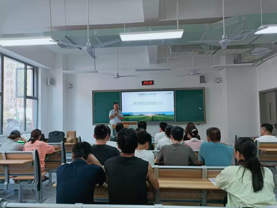 会议伊始,福华通达化学股份公司人力资源部部长肖茂强通过视频展示、PPT讲解、面对面交流等方式向同学们介绍关于我们、就业前景、岗位介绍、福利待遇等。毕业生们积极与企业人员互动,询问普遍较为关心的个人发展、实习安排等相关事宜,两位宣讲人针对问题进行一一解答,并给毕业生们提出宝贵意见。